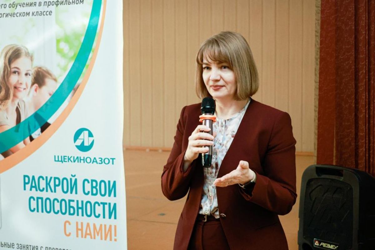 Татьяна Юрьевна рассказала о возможности выбора траектории обучения для школьников при взаимодействии с АО «Щекиноазот».